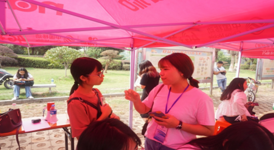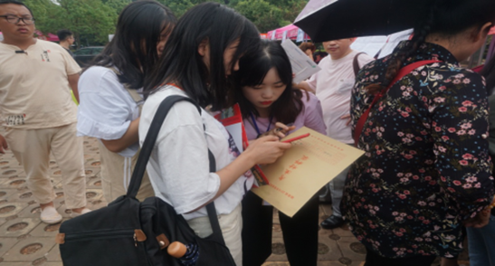 图5 国际传播学院学生志愿者现场帮助学生