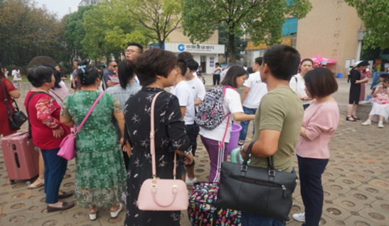 时间滴答过,学子陆续来,上午迎新现场热闹非凡,到处都是忙碌的身影。迎新教师不厌其烦,积极解答新生及家长的各种疑问,迎新志愿者热情耐心,主动帮新生及家长接下沉重的行李,带领他们寻找宿舍,领取军训服,一路谈笑风生,画面感人。在热闹的迎新现场更有这样一些温暖的小画面映入眼帘,让人感动。学生干事徐丹红老师全程在迎新现场组织和协调,耐心解答新生需求,更在学生困难时伸出援助之手。新生辅导员韩慧翔、蔡堃两位老师不惧炎热,从最早的一刻坚守到最晚一刻,和学生志愿者同作息,共进退。正是有了国际传播学院师生的辛苦付出,迎新工作有条不紊,秩序井然。