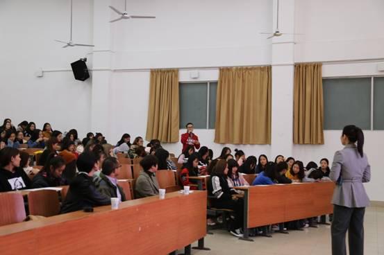 程女士以生动的案例,讲述了制定职业规划的基本原则、优秀职业人的成长路径、提高自我认知的主要方法等内容,引导新生认清现实,认真学习,时刻保持紧迫感,精心规划自己的未来。同学们积极互动,现场气氛热烈融洽。