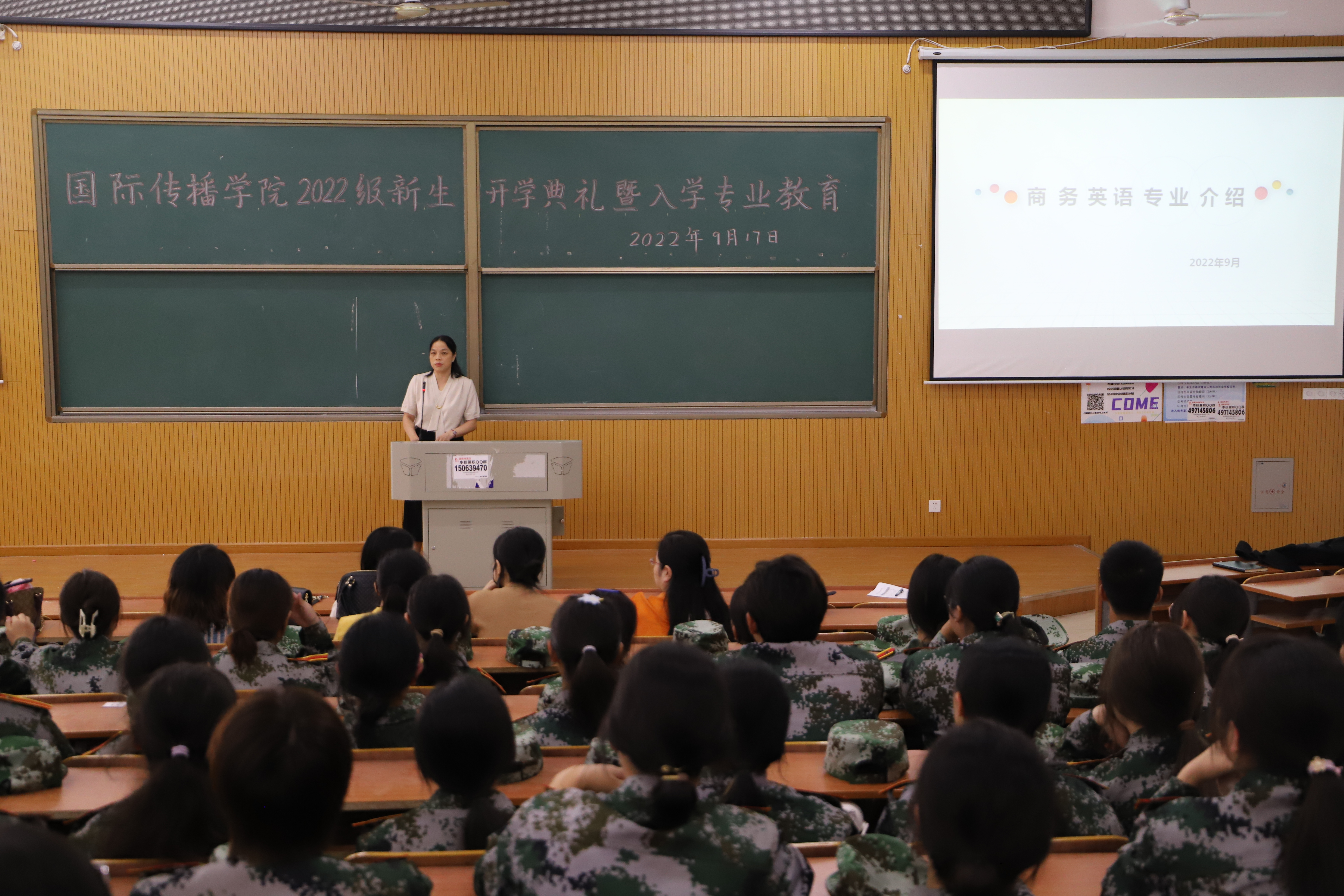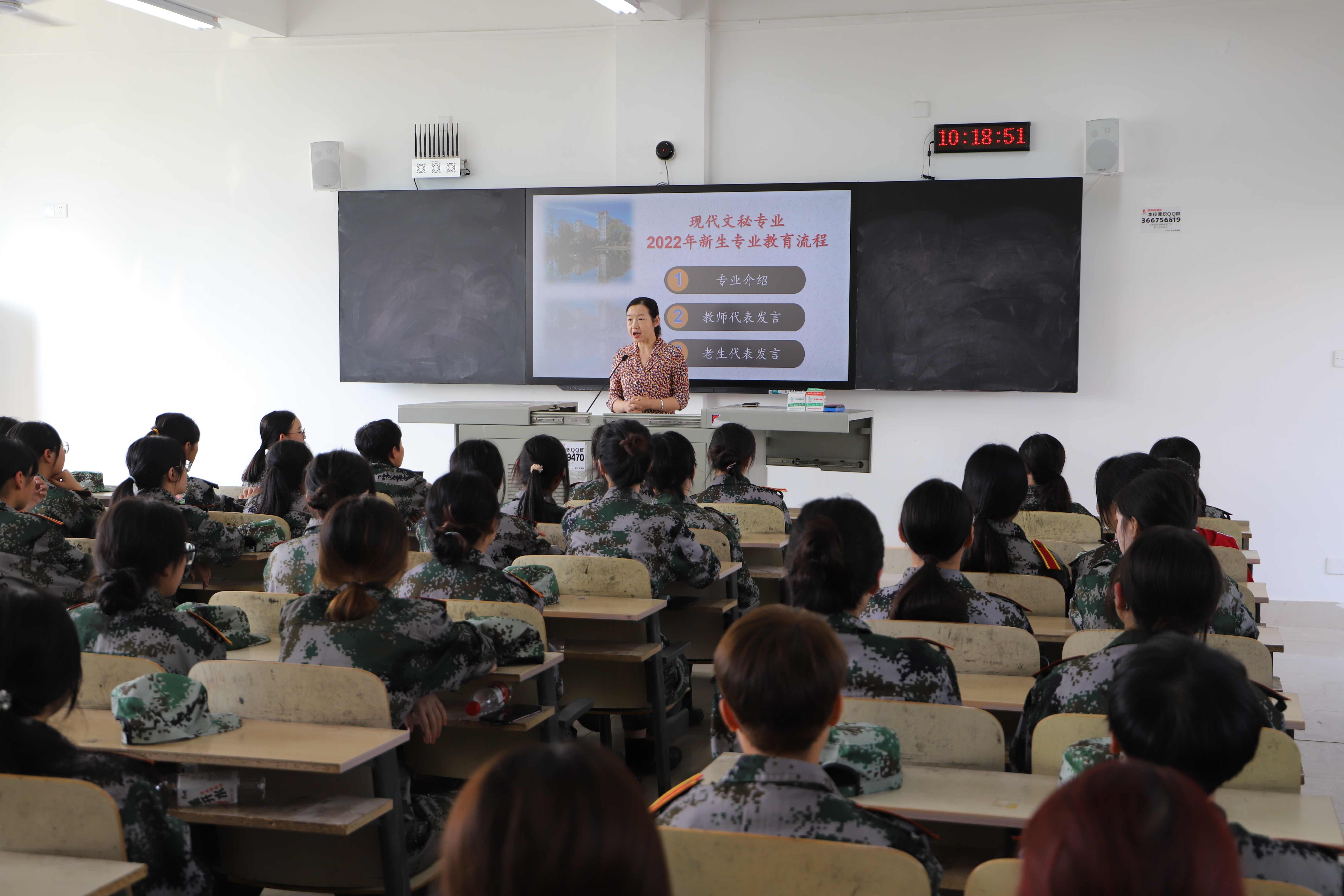 开学典礼结束以后,商务英语、现代文秘、休闲服务与管理三个专业的教研室主任分别在教学楼D301、A402、A403教室主持了专业教育,以便新生进一步熟悉所学专业的就业领域、培养目标、毕业条件、应修课程、必读书目以及就业前景。