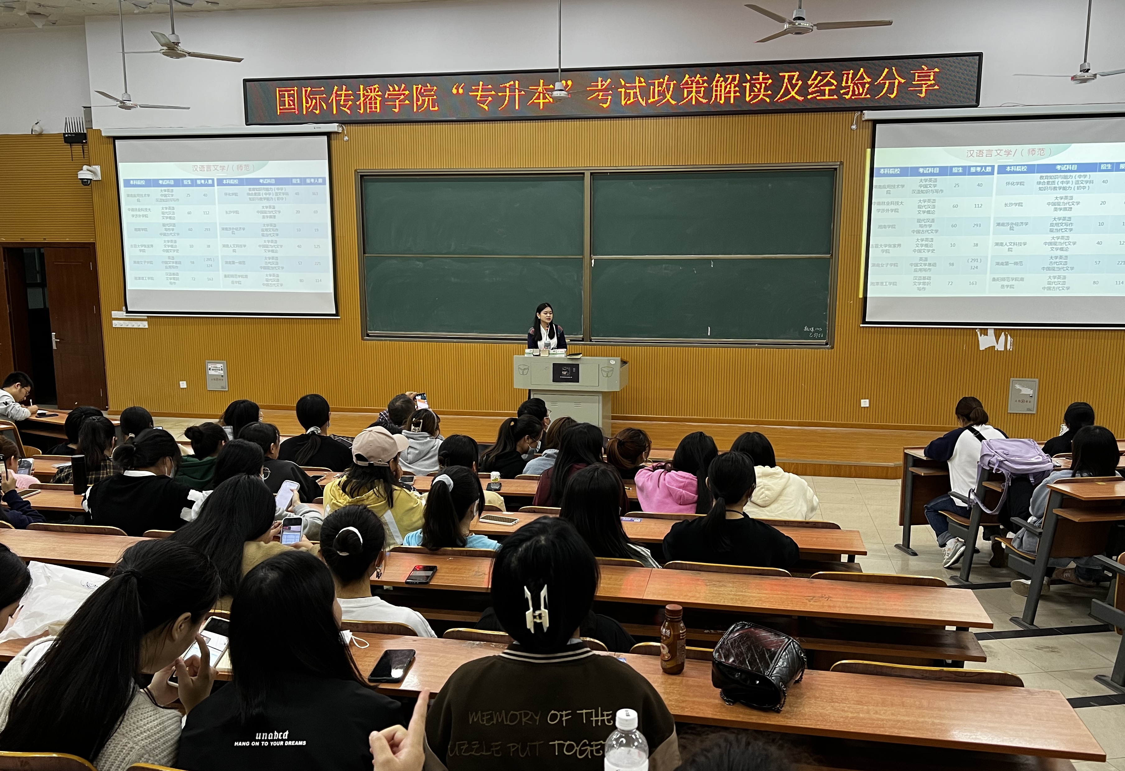 11月3日下午,国际传播学院在教学楼D302教室举行了“专升本”考试政策解读及经验分享会。分享会由该院党总支书记主持,该院2023届毕业班学生以及有“专升本”意向的大一、大二学生踊跃参加。