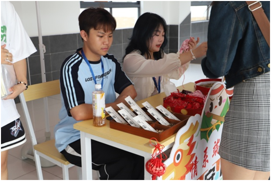 本次活动积极响应今年国家文化和旅游部“文化与自然遗产日”的“保护传承非遗 赓续历史文脉 谱写时代华章”的主题,深度结合学院商务英语、现代文秘、休闲服务与管理三个专业的专业特色,充分展示学生专业技能水平和专业学习成果。活动共分为四个板块—“奇妙游园 猜灯谜”“五洲别畛通言语”“山川异域同风雅”“情系端午 寄安康”,分别展示了猜灯谜、英语猜成语、茶艺表演、漆扇制作、香囊制作等特色内容,让在校师生和返校校友们沉浸式体验非遗文化,充分感受中华优秀传统文化的魅力。