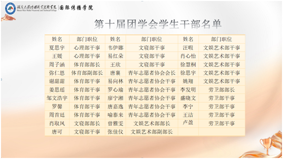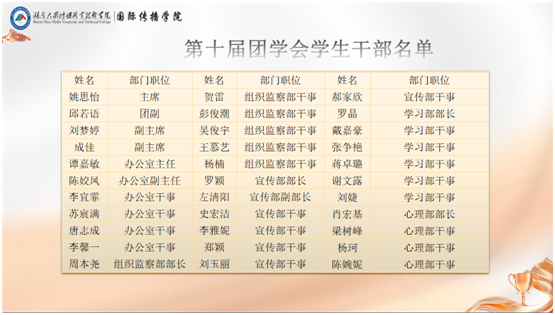 国际传播学院第十届团学会学生干部名单