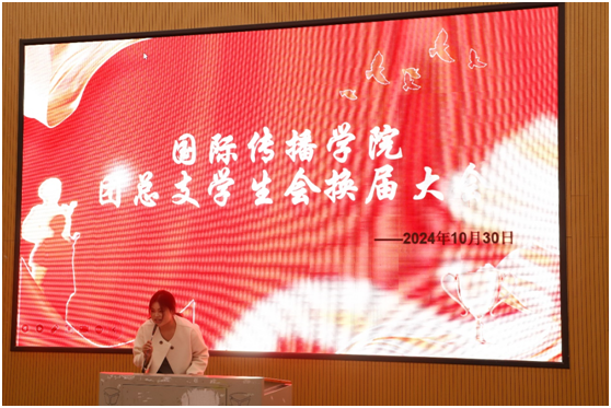 为进一步加强团总支学生会的组织建设,深化学生干部的责任与担当意识,确保团学工作的连续性和创新性,2024年10月30日,国际传播学院团总支学生会换届大会在教学楼D101隆重召开。国际传播学院院长黄林非、党总支副书记李洁出席,全体专职辅导员及第九届、第十届团学会全体学生干部参加。本次大会由学院第十届团总支副书记邱若语主持。