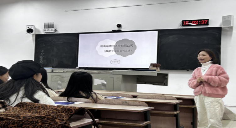 湖南省唐羽茶业有限公司人力资源部负责人从企业概况、岗位职责、实习环境等方面做了具体介绍,并分享了实习生在企业中的发展机会和成长空间。互动环节,学生也从多方面提出了疑问,企业负责人耐心解答了相关问题并给出了很多针对性地建议。