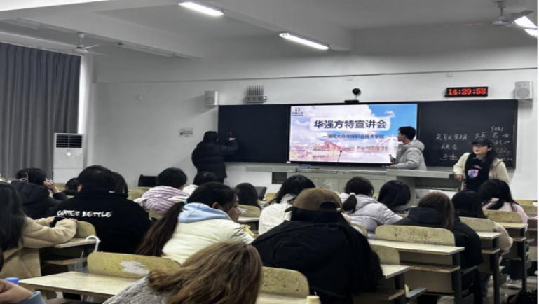 华强方特文化科技集团有限公司人力资源部负责人强调公司致力于打造一个充满活力、创新的工作环境,为员工提供广阔的职业发展空间和持续的学习机会。宣讲会现场气氛热烈,同学们对公司的企业文化和职业发展机会表示出浓厚的兴趣。