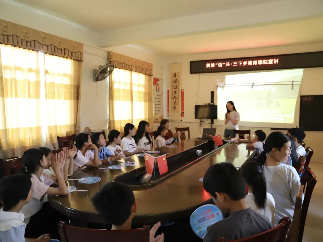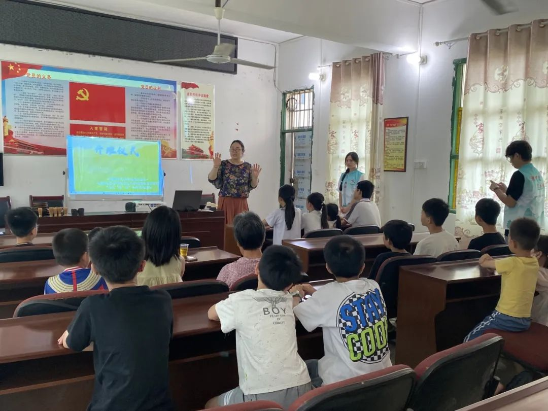 7月9日,国际传播学院“美美‘语’共”社会实践团队给舂陵江镇岩口村和柏家村的孩子们教授了点茶和扎染两项传统技艺。