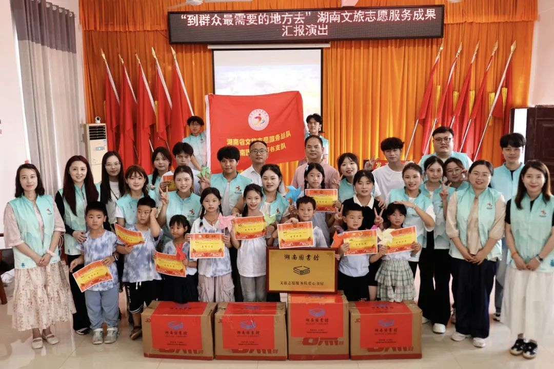 本次“三下乡”社会实践活动依托于湖南省文旅厅“到群众最需要的地方去”文旅志愿服务活动,同时还有幸邀请到了湖南图书馆为我们的活动助力——其捐赠的300余本图书正式入驻当地乡村“爱心书屋”,让优质文化资源真正扎根基层。从学院领导的“一线指导”到镇政府的“全力协同”,再到湖南图书馆的“资源注入”,多方领导的重视与支持,为活动的顺利开展筑牢了根基,更让“高校服务地方、文化反哺乡村”的理念落地生根。