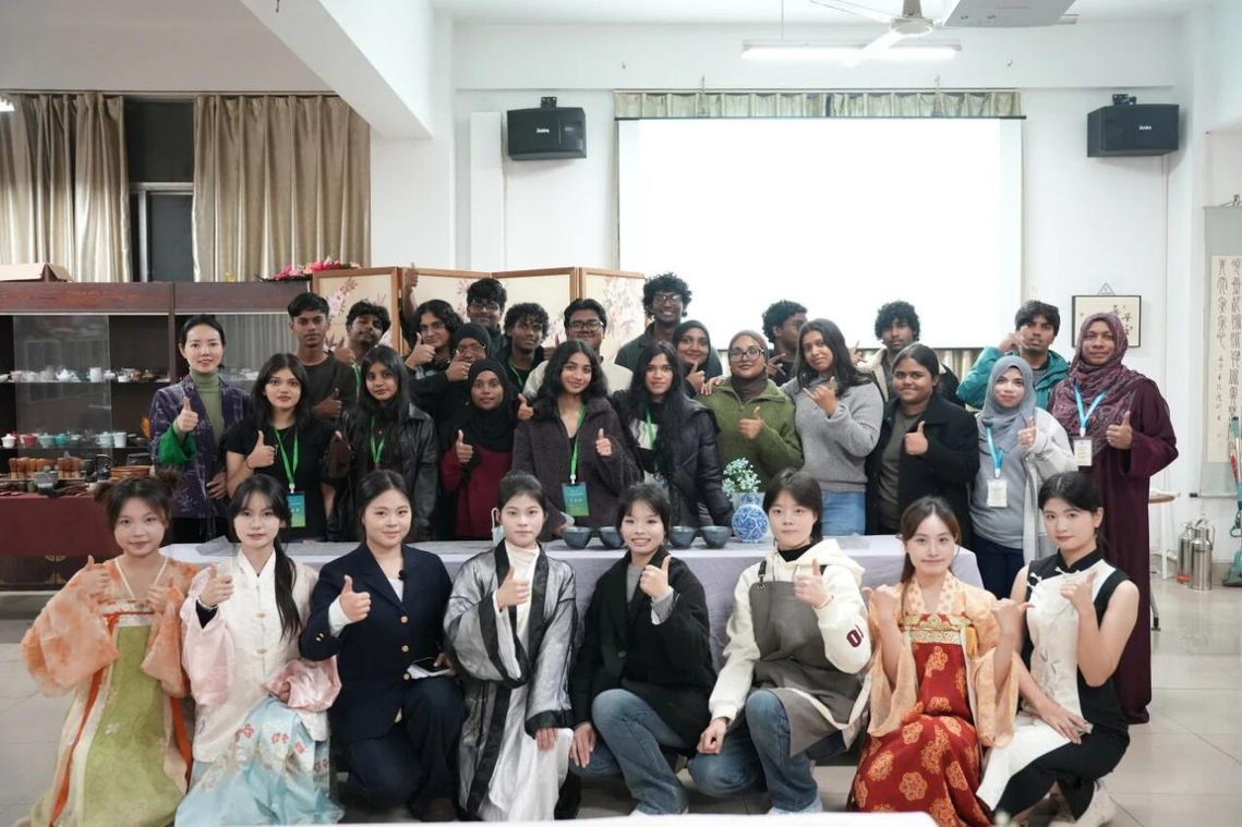 活动尾声,中外学子并肩合影,一张张笑脸在镜头前定格。此次茶艺接待,不仅让马尔代夫友人领略了中国茶文化的博大精深,更让跨国的友谊在茶香中悄然萌芽。未来,我院也将继续以文化为桥,让中外交流的故事在更多美好场景里续写。